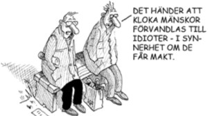 De kloka är ofta/vanligen demokratiskt lagda, lyssnar på och försöker ta hänsyn till de övriga, något idioterna och deras medlöpare skiter blankt i. På grund av detta ”får” de osmarta ett inflytande som deras åsikter kanske inte förtjänar. Lindströms resonemang från 8/12 -18 är betydligt mer detaljerat och roligt.