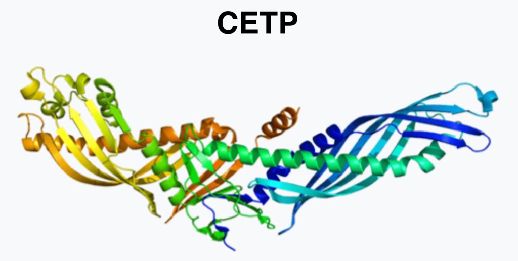 CETP (cholesteryl ester transfer protein) är ett rörformigt proteinkomplex, som finns på HDL, ansluter mellan lipoproteiner som utbyter delar av sina innehåll. CETP fungerar ungefär som ett sugrör i ett glas med vätska. https://en.wikipedia.org/wiki/Cholesterylester_transfer_protein