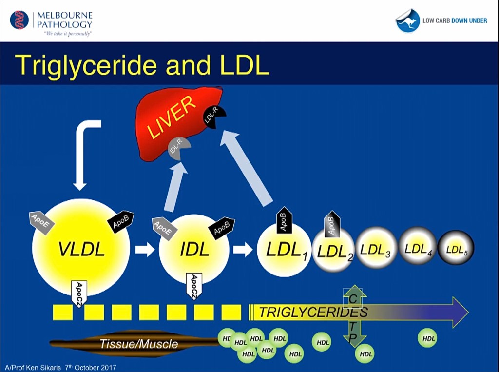 Återkommande erfarenheter av LCHF som livsstil är att den sänker TG (triglycerider från VLDL i det ”inre” kretsloppet av fett från levern) i samverkan med högre HDL. Dessa två brukar innebära att LDL (Low Density Lipoprotein) är ”stora och fluffiga” och tjänar som en betydande transportör av fetter för cellernas energibehov. Den ”stora och fluffiga” varianten av LDL (Pattern A) är begärlig för kroppen då de förbrukas ur blodomloppet inom ett par dygn.